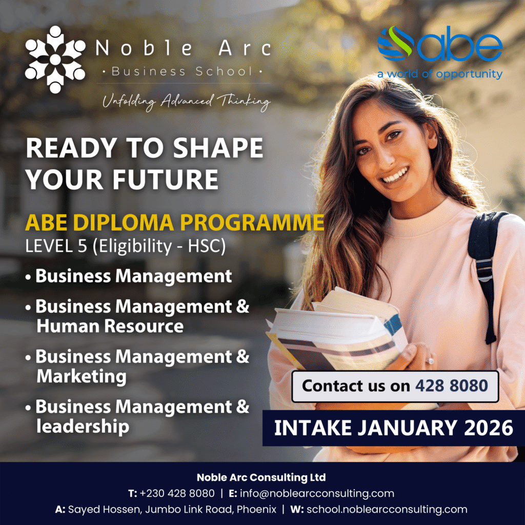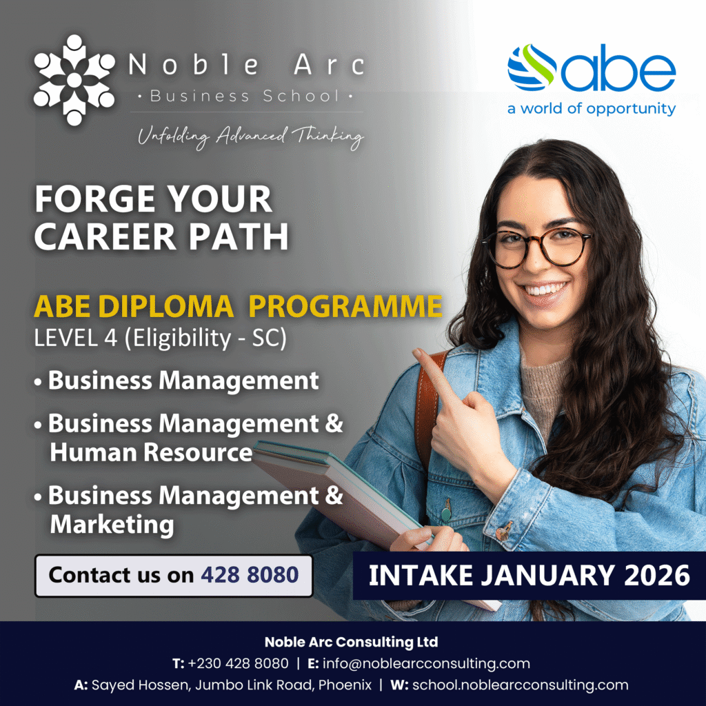 Noble Arc Business School is a professional training centre. We offer academic and professional programmes for students and employees who wish to enhance their learning skills. We we work in partnership with international management and marketing institutions such as ABE and the Chartered Institute of Marketing (CIM) and the school is already a Registered Training Institution (RTI) with the MQA and HEC.